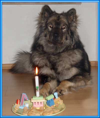 Wie schnell doch so ein Jahr rumgeht ... gerade haben wir Iceman Sam noch in Karlsruhe gesehen und Ice Baily durfte nicht mit nach Kassel, sie hatte aber Herrchen geschickt, da ist schon der April 2013 da! Unsere Ice-Bärchen wurden am Ostermontag 1 Jahr alt, Grund genug für die Familien ihren Schützlingen eine Torte zu zubreiten.