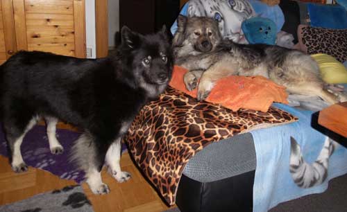 | Wir fühlten uns sooooo wohl, dass wir den ganzen Tag gelümmelt haben und Frauchen schon dachte, dass die Bande gar nicht mehr raus käme. |