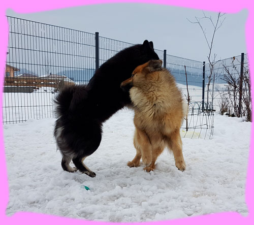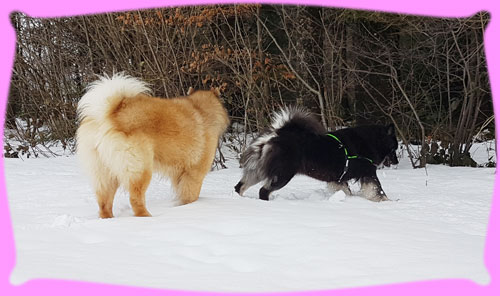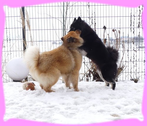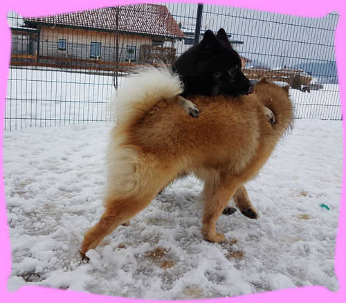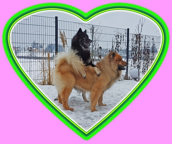 Wir Mädels waren echt geschafft, aber die Jungs hatten echt ihr Hirn verlegt ... und ja das Zuckerstäbchen sagte am Donnerstag noch mal Eisprung und nun hoffen wir, dass es geklappt hat. Frauchen sagt, diese Läufigkeit war anders, ja und das hat auch die Tierärztin bestätigt, denn Amanij hat Amicelli getroffen (ihr erinnert euch, dass Frauchen mit Amanij weg war) und die war auch schon eine Woche unterwegs und es hatte nicht geklappt, auch nicht mit Amanij am Sonntag, doch sie war so verliebt in Amanij, dass sie schnell und unbemerkt doch noch Eisprung hatte und oh oh ... Doppelhochzeit ...