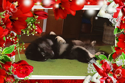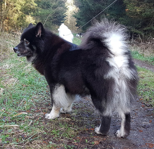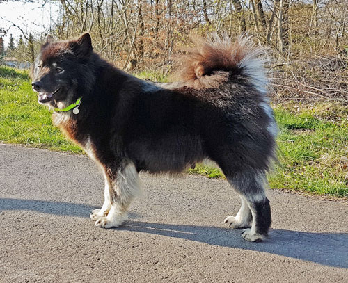Woche 6 Die Woche war echt aufregend, denn einmal morgens, da krabbelte was im Bett, voller Panik bin ich erstmal rausgehüpft. Wie gut dass Mama da nicht gerade lag, die wäre jetzt platt ... Ja aber HILLFFFEEEE Frauchen was war das??? Sie lag noch im Bett, hat mich wieder gerufen und mir erklärt, dass sich meine Welpies im Bauch nun bewegen und ich es fühlen könne. Puh ... ach soooo Während ich also zu Hause sitze und meinen Bauch pflege, da ist mein Lover voll im Stress. Das eine Wochenende war er mit seinem Sohn drei Tage auf Seminar. Beide haben einen Teamschein gemacht, das bedeutet, dass sie nun in Seniorenheime und zu Kindern gehen dürfen und diese bespaßen oder ihre heilenden Kräfte weiter geben. Natürlich zeigen sie dann auch, was wir Eurasier so alles können ... Apropos was Eurasier können, ja Azou ist auch noch beim Agility sehr aktiv, denn er darf bald in Österreich an der EM teilnehmen und dafür trainiert er ... und mich vergisst er wohl ...
