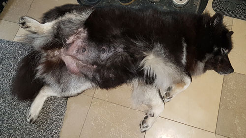 Mein Bauch der wächst und wächst, aber ich gehe fleißig mit Gassi, schließlich könnte ich ja was verpassen und ehrlich alleine zu Hause ist auch nicht mein Ding. |