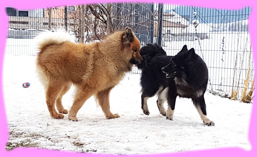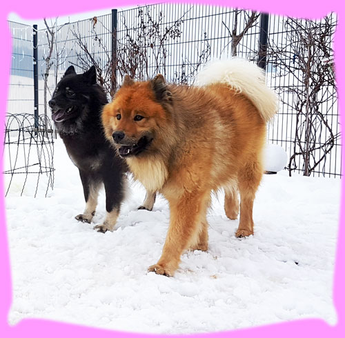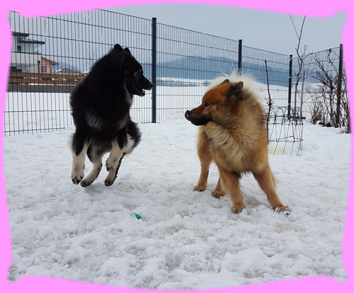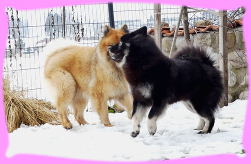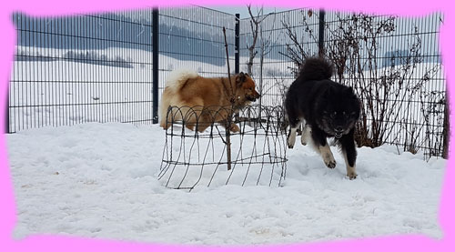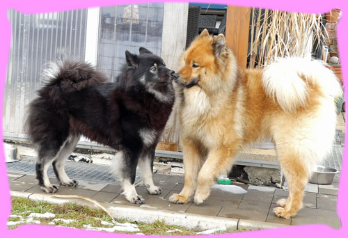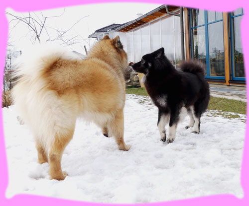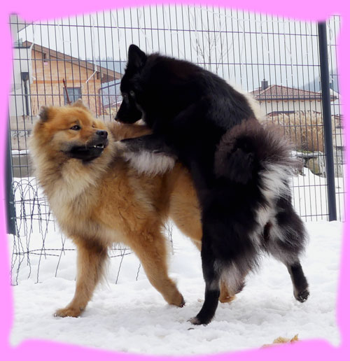 Wie viele ja wissen, fangen die Planungen für einen Wuppertatzen-Wurf schon sehr früh an, eigentlich schon, wenn der letzte Wurf abgegeben wurde ... Das war diesmal nicht schwer, denn, dass es Azou werden wird stand ja schon viel viel früher fest ... eigentlich schon vor Jahren, als wir uns auf den Ausstellungen kennen gelernt haben, damals hatten wir beide die Jungspunde Hiron und Amanij im Schlepptau. Um bis hierher zu kommen mussten dennoch einige neue Hürden genommen werden. So hat zum Beispiel das Zuchtgremium im EKW (unserem Heimatverein, dem Eurasier Klub Weinheim e.V.) beschlossen, dass alle Zuchthunde die derzeit vorhandenen Gentests absolvieren müssen. Das war für mich sehr leicht, denn dazu wurde ein so genannter Backenabstrich gemacht, für Frauchen auch leicht aber eben Kosten ... die drei Ergebnisse waren nach kurzer Zeit verfügbar: DWLM-N/N, E-Locus E/E, S-Locus N/N. Was heißt das nun, also ich bin kerngesund und alle 3 Gentests sind für mich hervorragend. In Österreich gilt das Gleiche und Azou ist auch frei in allen drei Gentests, sodass damit ihre Welpies auch frei sein werden und eben nicht getestet werden müssen. Da ich ja ein Showgirl bin, habe ich im Januar Frauchen gefragt, wie denn so die Planungen seien, da sagt sie doch glatt, Du Welpies und Amanij Show. Pah!!! Naja, die letzten beiden Shows habe ich mich nicht so gut präsentiert, wie sonst, doch wir fuhren zusammen nach Belgien und da habe ich es ihr gezeigt, ich kann!!! ... wenn mir der Richter gefällt :). Trotzdem habe ich mal schnell meinen Pelz abgeschmissen und gleich erneuert im Galopp und wurde viel früher wie geplant läufig. (Der Showkalender hing ja schon und da habe ich schnell gerechnet, dass ich schnell wieder mitlaufen kann). Ja und Frauchen kann scheinbar in die Zukunft schauen, denn sie hat die nächsten zwei Shows in Belgien wieder nur Amanij gemeldet. Meine frühe Läufigkeit brachte Frauchen erstmal Stress, denn die Genehmigung für eine Auslandverpaarung muss sowohl von unserem Zuchtvorstand, wie auch dem aus Österreich genehmigt und unterschrieben werden. Frauchen wusste ja schon lange, dass sie unterschrieben ist, aber sie wurde halt nicht an sie geschickt. Endlich, kamen die erwarteten mails, halt die Genehmigung vom Zuchtvorstand für Österreich und die komplette Liste (auch die Ersatzrüden) vom Zuchtleiter, sowie die Gesundheitsdaten. Geschafft! Die nächste Hürde wurde angegangen, denn so eine Fahrt nach Österreich mit Unterkunft etc. muss geplant werden. Naja und wann genau ich meine so genannten Stehtage habe, lässt sich ja nie so genau vorhersagen ... Nach einigem Hin und Her wurde beschlossen mit der ganzen Familie zu reisen, nicht weit entfernt von Azou fand sich ein Bauernhof, der auch Ferienwohnungen anbietet und uns 4 Rasis gerne aufgenommen hat. Es war eine sehr schöne, sehr warme und große Wohnung, direkt über dem Kuhstall (das lieben meine beiden ja noch von früher), für meine Nase war es teilweise ein weinig viel Kuhgeruch. Frauchen hat dann mal von Sonntag bis Mittwoch gebucht, da Herrchen ja am Donnerstag wieder arbeiten musste. Doch bis Sonntag, dem Abreisetag, lieferten die Zuckerstäbchen kein brauchbares Ergebnis, das heißt eben kein Eisprung. Tjaja, nur ob mir das alles so gut tut, also das mit dem Vereisen der ganzen Familie???? Es fing schon damit an, dass ich nun eine Einzelbox im